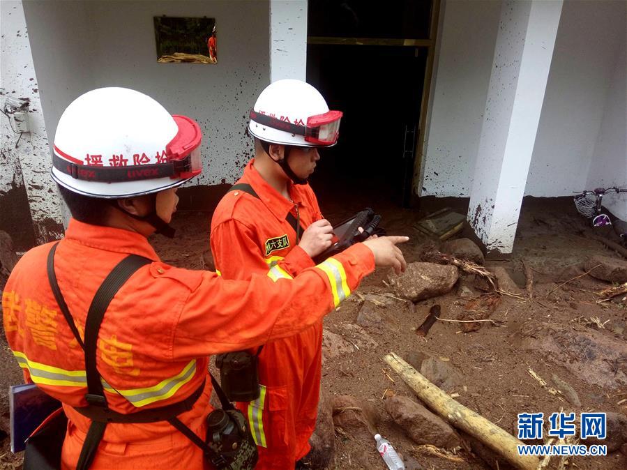 5月8日,在福建泰寧山體滑坡救援現(xiàn)場(chǎng),武警水電二總隊(duì)六支隊(duì)官兵利用“雷達(dá)生命探測(cè)儀”對(duì)任務(wù)區(qū)進(jìn)行搜救(手機(jī)拍攝)。