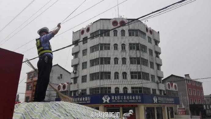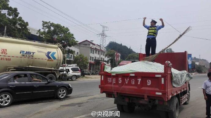 近日,在湖北宜昌一路段,電信光纜被風刮斷,導致道路擁堵。交警董金橋?qū)⒐饫|奮力托起,留出空間保障車輛通行。一個多小時后,電信工作人員趕到搶修,直到線纜復(fù)位,董金橋才放下手臂休息。 央視記者 魏軼 圖片來源:央視新聞官方微博
