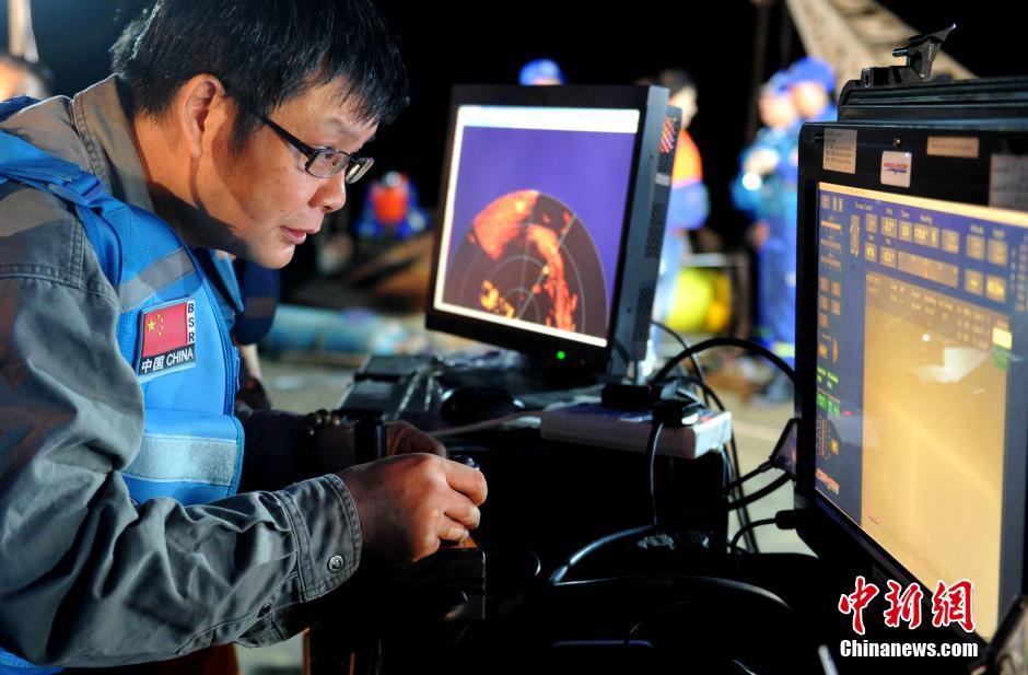 6月7日凌晨,專家正在操作水下機器人對沉船內(nèi)部進行查勘。當日,四川廣元沉船事故救援現(xiàn)場,參與救援的水下機器人先后兩次下水,并通過攝像頭在翻沉的“雙龍”號船內(nèi)發(fā)現(xiàn)有遇難者以及一些漂浮物品。中新社記者 劉忠俊 攝