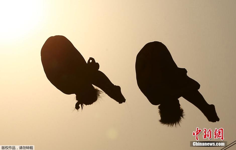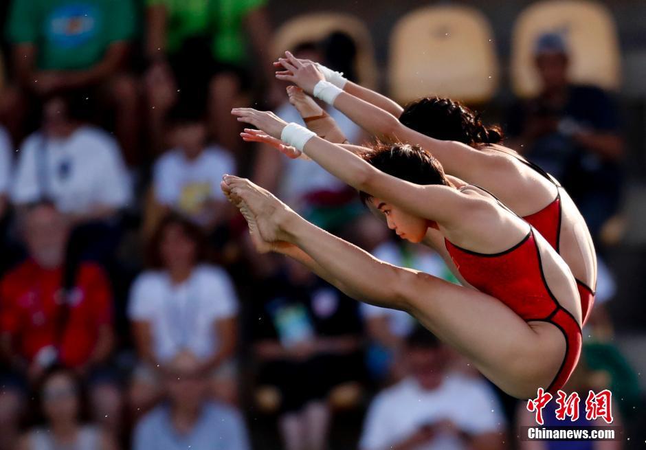 當?shù)貢r間8月9日,2016里約奧運跳水女子雙人十米臺,中國選手陳若琳/劉惠瑕以354.00分獲得冠軍。圖為中國選手陳若琳/劉惠瑕在賽前熱身。