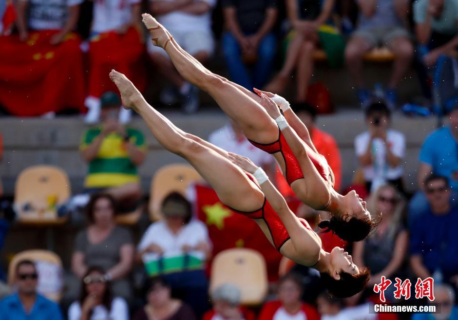 當?shù)貢r間8月9日,2016里約奧運跳水女子雙人十米臺,中國選手陳若琳/劉惠瑕以354.00分獲得冠軍。這也是陳若琳收獲的第五枚奧運金牌。中新網記者 杜洋 攝