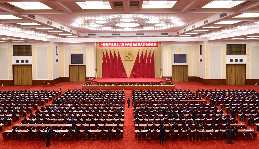 中國共產(chǎn)黨第十八屆中央委員會第六次全體會議,于2016年10月24日至27日在北京舉行。中央政治局主持會議。 新華社記者 張鐸 攝