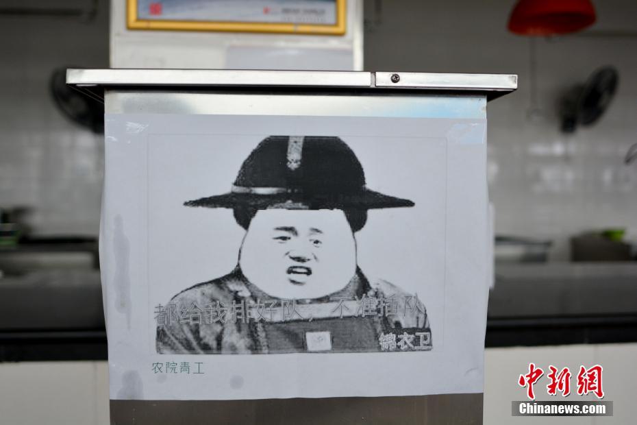 近日,四川農(nóng)業(yè)大學食堂的“魔性”表情包告示牌在網(wǎng)絡(luò)走紅。告示牌上除了夸張的“魔性”圖案,還配有“吃完盤中餐,不做剩男剩女”、“敢在食堂撒野”、“默默吃著飯”等文字。四川農(nóng)業(yè)大學工作人員介紹,這組魔性表情包告示牌由該校農(nóng)學院同學們自發(fā)創(chuàng)作張貼,目的是為了讓同學們不要浪費糧食,注意排隊。 四川農(nóng)業(yè)大學供