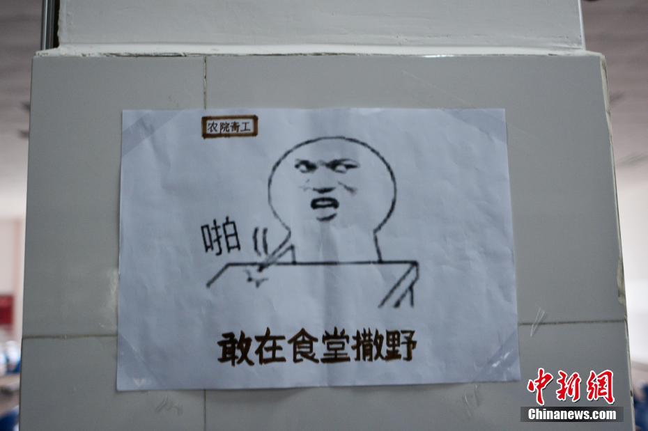“魔性”表情包告示牌在四川農(nóng)業(yè)大學食堂隨處可見。 四川農(nóng)業(yè)大學供圖