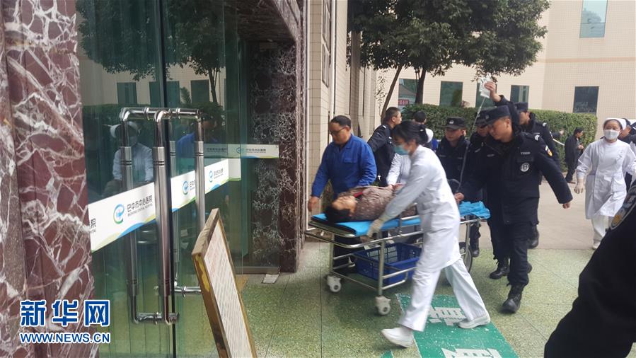 12月18日,醫(yī)護人員將一名疑似中毒人員轉(zhuǎn)運至四川省巴中市中心醫(yī)院(手機拍攝)。記者18日從四川省巴中市委宣傳部獲悉,當日巴州區(qū)金碑鄉(xiāng)發(fā)生一起涉及30名群眾的疑似食物中毒事件。目前,已造成2人死亡,3人病情較重。新華社發(fā)(新浪微博網(wǎng)友@巴中那些事 提供)