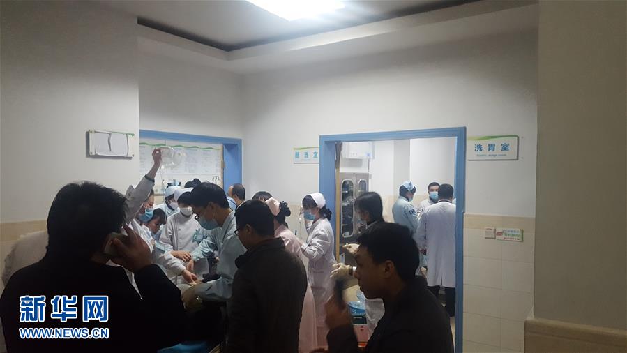 12月18日,在四川省巴中市中心醫(yī)院,醫(yī)護人員對疑似食物中毒人員進行救治(手機拍攝)。記者18日從四川省巴中市委宣傳部獲悉,當日巴州區(qū)金碑鄉(xiāng)發(fā)生一起涉及30名群眾的疑似食物中毒事件。目前,已造成2人死亡,3人病情較重。新華社發(fā)(新浪微博網(wǎng)友@巴中那些事 提供)