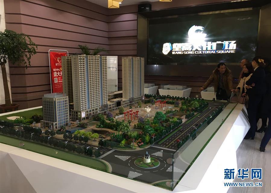 12月8日用手機(jī)拍攝的河南汝州望嵩文化廣場(chǎng)沙盤,沙盤左側(cè)是購物廣場(chǎng)和住宅樓,市民正在詢價(jià)。 新華社記者 馮大鵬 攝 圖片來源:新華網(wǎng)