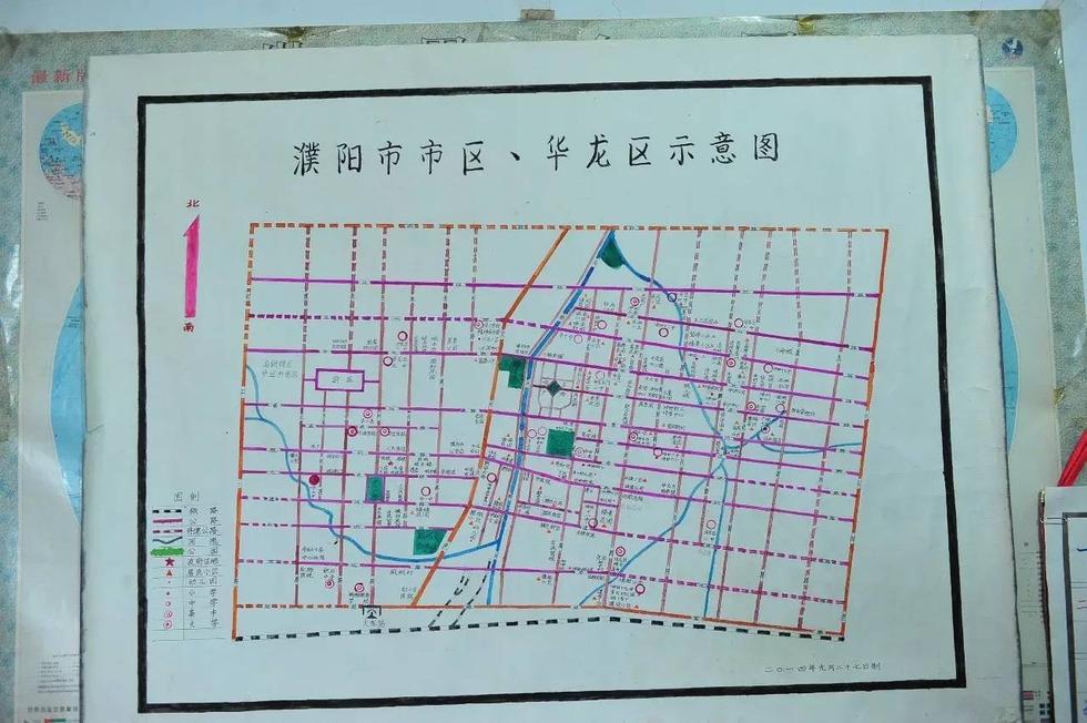 于是,76歲的他開始白天騎車走街串巷,沿途掏出紙和筆進行勾勒、記錄,標注街道、商鋪、路線,畫出簡易地圖;晚上,他就從廚房拿出面板,當作繪圖板認真畫圖。就這樣,他利用兩年時間,繪制完成市區(qū)主要單位商鋪示意圖、華龍區(qū)主要單位商鋪示意圖、濮陽市道路交通圖等4張地圖,成為當前濮陽市最新地圖。