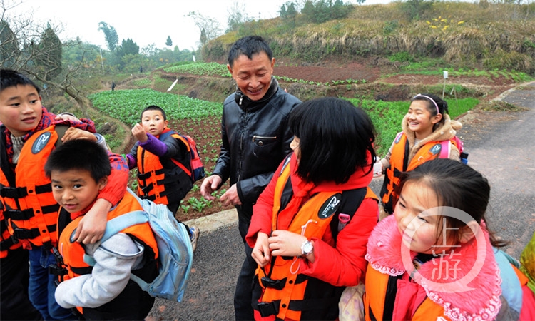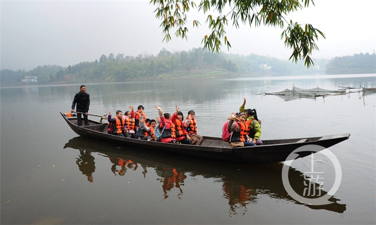 每當(dāng)上學(xué)放學(xué)的時候,在大足區(qū)響水灘水庫,平靜的水面上,總能看見一條小小的木船來回穿梭。上學(xué)時,撐船的人把岸邊的孩子一個一個牽上小船;放學(xué)時,撐船的人把船上的孩子一個一個牽下小船。