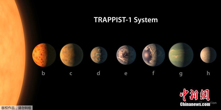 2017年2月23日消息,據(jù)美國宇航局網(wǎng)站(NASA)消息,天文學(xué)家宣布,在距離地球40光年的單顆恒星周圍發(fā)現(xiàn)7顆地球大小的類地行星,其中3顆確定位于宜居帶內(nèi),或許它們都有水存在。