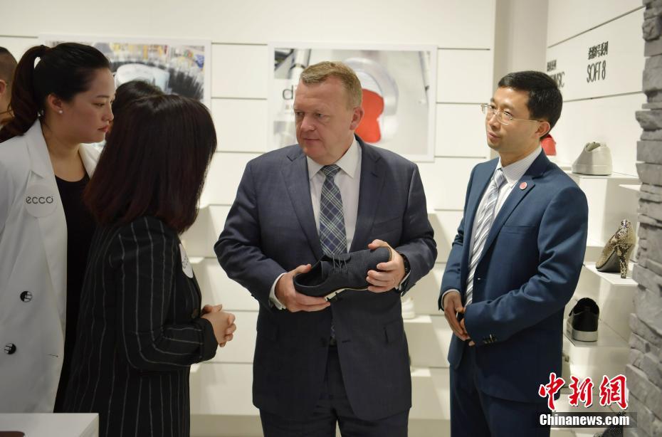 5月2日,丹麥?zhǔn)紫嗬鼓律构涮爬?,走進(jìn)1963年創(chuàng)立于丹麥的“愛步”鞋類品牌店了解情況。當(dāng)日,應(yīng)中國國務(wù)院總理李克強(qiáng)邀請,丹麥?zhǔn)紫嗬鼓律D行抵達(dá)中國成都,開始對中國進(jìn)行正式訪問,拉斯穆森此訪系其2015年當(dāng)選首相以來首次訪華,其訪問首站就來到四川成都。中新社記者 劉忠俊 攝