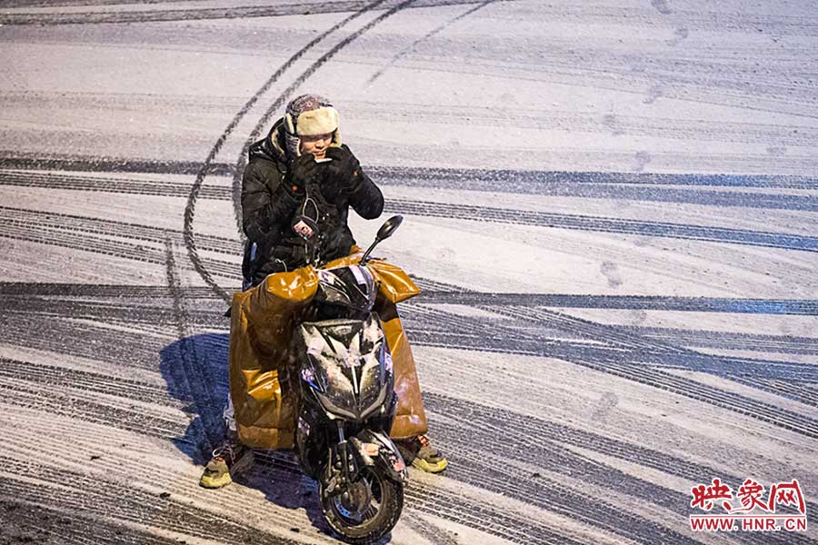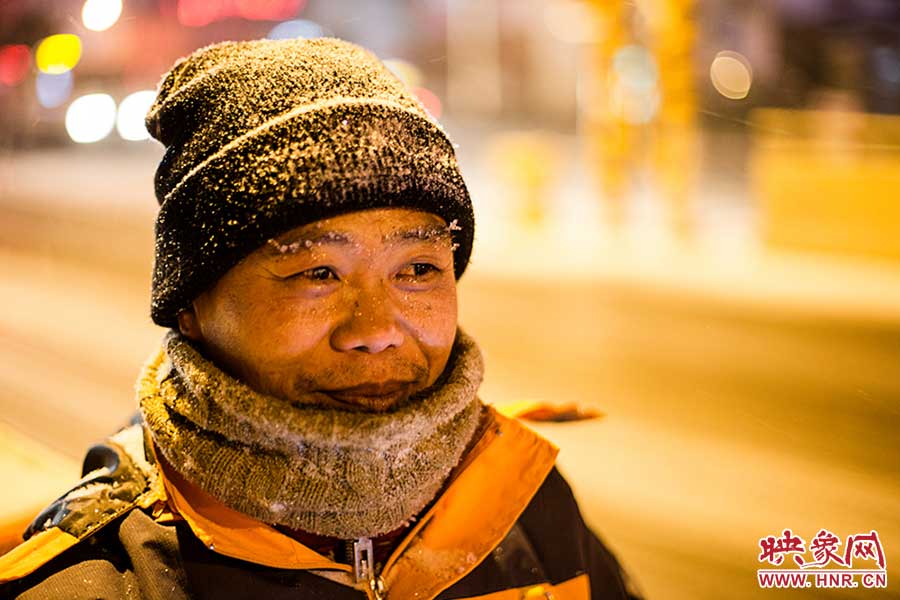 一位跑腿師傅剛從四環(huán)送貨回來,眉毛上都落上了雪花