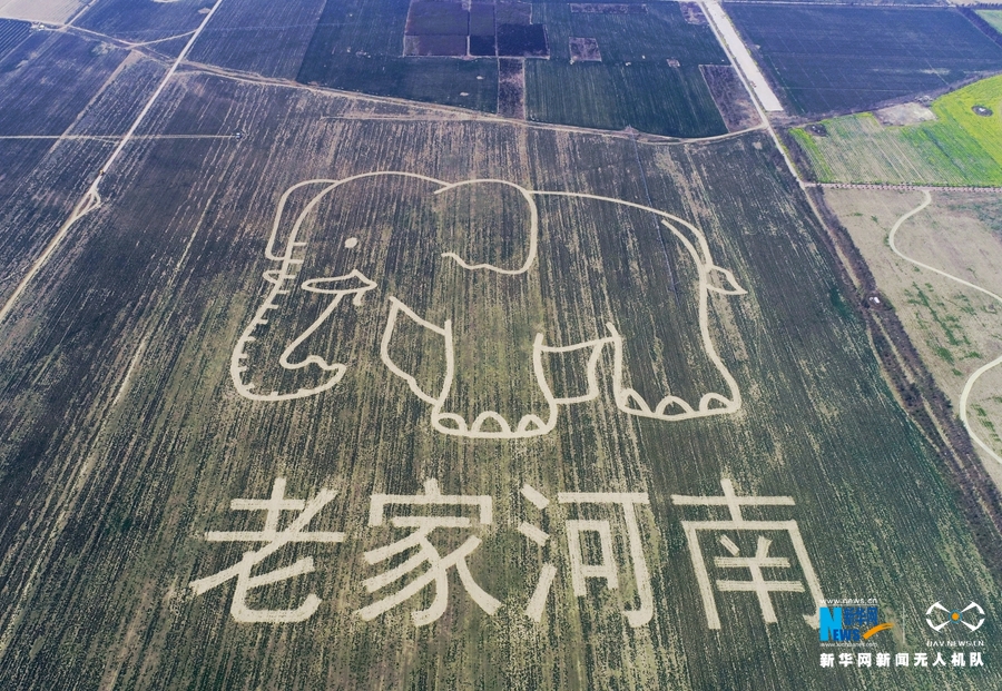 近日,《老家河南》創(chuàng)意圖案亮相河南省溫縣境內(nèi)的黃河濕地。據(jù)介紹,這幅圖案占地一公頃,主要通過(guò)圖案設(shè)計(jì)、定點(diǎn)測(cè)繪、錯(cuò)季間作、田間管理等環(huán)節(jié)制作而成,《老家河南》由大象圖案和“老家河南”字樣組成。新華網(wǎng)發(fā) 徐宏星攝