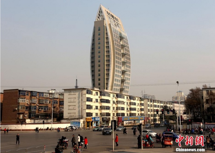 河南省鶴壁市淇濱區(qū)淇水大道與珠江路交匯處的龍門大廈外形酷似一個(gè)|“板凳”,看到的人紛紛稱奇。