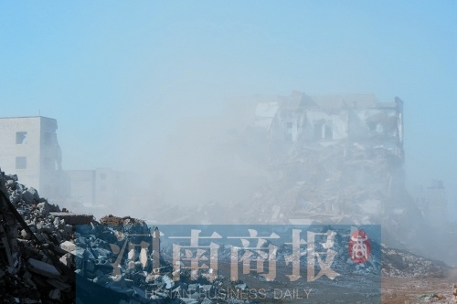 河南商報記者隨后趕到現(xiàn)場,站在建設路與西三環(huán)向南路口,離拆遷現(xiàn)場還有300多米,就已經看到灰色揚塵升騰起數(shù)十米。