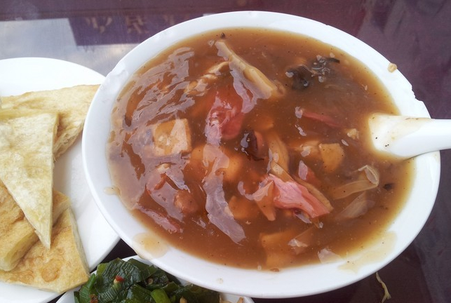 蜿蜒東流的潁河和千載悠悠的沙河在逍遙鎮(zhèn)匯合,這里的胡辣湯流傳至今,口味絕佳,辣中有酸,酸中有辣,辣歸辣,卻不上火,且有益行氣、健胃消食。一碗胡辣湯下肚,那感覺就像鎮(zhèn)名,真叫一個“逍遙”。如今逍遙鎮(zhèn)以胡辣湯聞名于世,一說起河南的胡辣湯,人們首先想到的便是逍遙鎮(zhèn)胡辣湯。