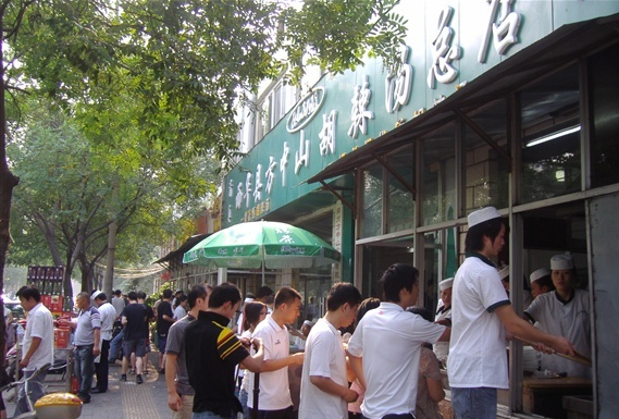 在河南各地,來喝胡辣湯的客人多是周圍街坊鄰居,于是胡辣湯店又變成了鄉(xiāng)親們的集會場所,用河南話這叫“趕飯場兒”。老李家的二閨女嫁到了城里,王家的老么考上了大學(xué),東頭的老楊頭前幾天沒啦……這些信息隨著“刺—溜”聲得以交流。