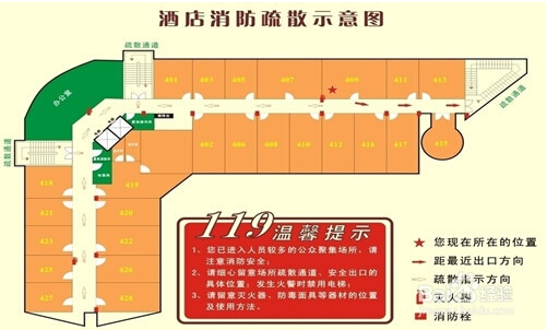 在公共場所的墻面上、頂棚上、門頂處、轉(zhuǎn)彎處,“安全出口”、“緊急出口”、“安全通道”、“太平門”、“火警電話”以及逃生方向箭頭、事故照明燈等消防標(biāo)志和事故照明標(biāo)志。被困人員看到這些標(biāo)志時(shí),馬上就可以確定自己的行為,按照標(biāo)志指示的方向有秩序地撤離逃生,以解“燃眉之急”。