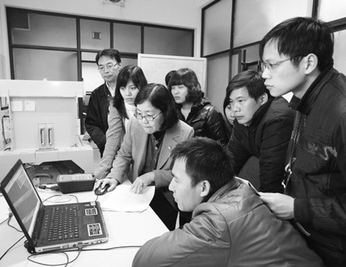 在河內,日本核專家對參加培訓課程的越南學生進行輔導。(世界新聞報圖片)