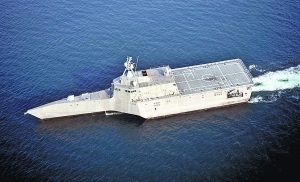 從軍事角度上來說,獨立級是第一種以實戰(zhàn)為目的三體艦艇。三體艦的設(shè)計可以在較小排水量的條件下,帶來更大的甲板面積,這對瀕海戰(zhàn)斗艦有著獨特的意義。因為美國海軍要求這種新型艦艇不但可以在近海進行海戰(zhàn),還要具備相當?shù)倪\輸能力,能夠有同時操作兩架直升機的大型甲板。