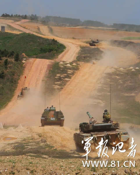 南京軍區(qū)某部把部隊拉到野外生疏地域展開實兵檢驗性演習(xí),錘煉復(fù)雜電磁環(huán)境下部隊遠程機動、指揮控制、偵察預(yù)警和火力打擊能力。圖為4月下旬,該部坦克梯隊向演習(xí)地域開進。(龐祥川)
