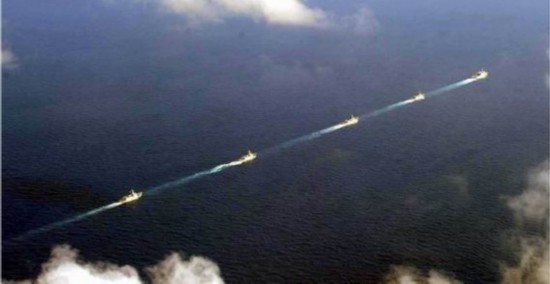 圖為中國(guó)昆侖山艦隊(duì)一字縱隊(duì)開往黃巖島海域