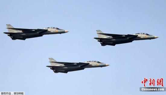 當(dāng)?shù)貢r(shí)間2012年4月17日,伊朗舉行大型軍隊(duì)閱兵式慶祝建軍節(jié)。圖為伊朗空軍F-14戰(zhàn)機(jī)飛過(guò)檢閱臺(tái)。