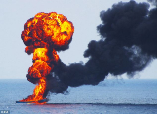 海盜船被擊中,冒出濃密黑煙