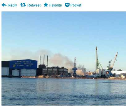 據(jù)稱,現(xiàn)場火勢兇猛,多名消防隊(duì)員在滅火過程中受傷。造船廠公共事務(wù)專員加里·西德勒斯(Gary Hildreth)稱,著火位置在邁阿密號前艙,所有非搶救人員都已經(jīng)撤離。到晚上7點(diǎn)半左右,從樸茨茅斯普雷斯科特公園里仍能看到邁阿密號上升起的黑煙。一輛消防車已經(jīng)趕到火災(zāi)現(xiàn)場。