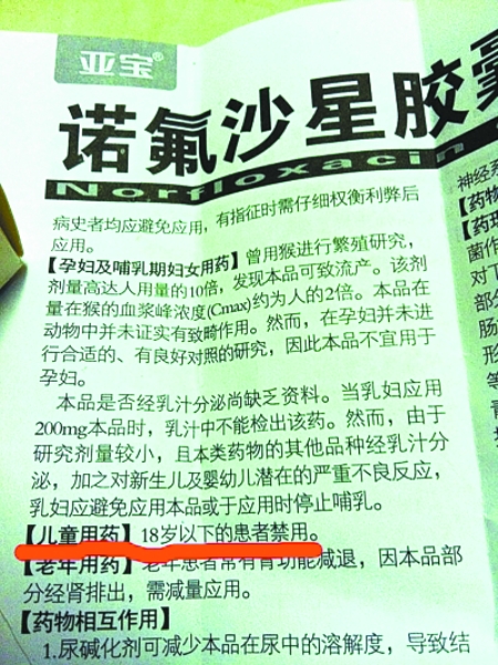 “我的孩子四五歲時(shí)經(jīng)常拉肚子,聽朋友說吃諾氟沙星管用,我就給孩子吃了這藥,前后共吃了十多粒。孩子現(xiàn)在身高明顯比同學(xué)矮許多。有什么補(bǔ)救措施嗎?做媽的后悔莫及。求懂醫(yī)的解答!”近日,一名叫“胡說的西紅柿”的網(wǎng)友在某論壇發(fā)帖求助。