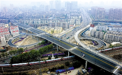 在金水路段,附近小區(qū)的王女士正在橋上行走。她告訴記者:“我們?cè)诟呒軜蚋浇?,這兩年門口的路真不好?,F(xiàn)在可好了,橋建得很壯觀,橋下面的路也好走了,將來(lái)路面還會(huì)更漂亮。”