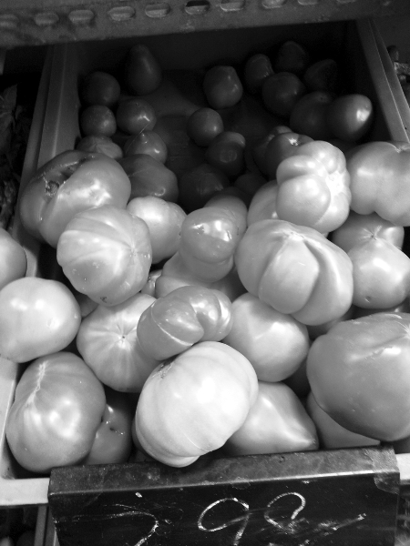 在市區(qū)其他菜市場(chǎng),不少攤點(diǎn)上也都是這樣的畸形果。超市工作人員說(shuō),最近批發(fā)來(lái)的番茄都這樣,價(jià)格也不便宜。