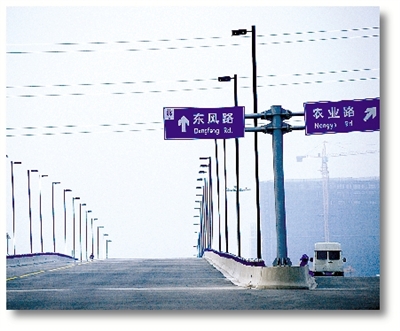 據(jù)了解,農(nóng)業(yè)路立交橋是這次京沙快速路修通以后最容易讓人迷路的一個節(jié)點(diǎn)。在該節(jié)點(diǎn)處,京沙快速路由北向南方向有一個下橋口,通過引橋匝道只能通往農(nóng)業(yè)路向東方向,如果從這里下橋想往農(nóng)業(yè)路向西方向行駛,就必須先沿著農(nóng)業(yè)路向東,到農(nóng)業(yè)路與南陽路交叉口調(diào)頭,然后再沿著農(nóng)業(yè)路向西行駛。