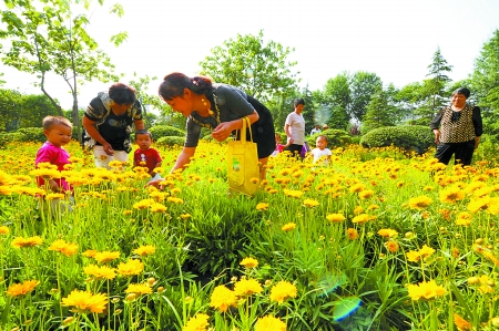 “只知道秋天去開封賞菊,沒想到初夏在鄭州就能欣賞到這么美麗的菊花,太令我心醉了!”把鼻子湊到金雞菊花上,一臉陶醉樣子的李女士說,沒想到這里有這么大一片菊花,花朵開得這么鮮艷。