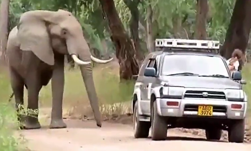 非洲野象頭部中彈子彈嵌入頭骨 淡定攔車(chē)求助