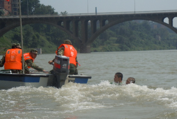 實(shí)拍武警救援時(shí)被洪水沖走