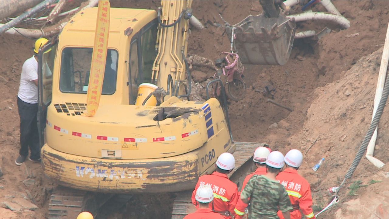 • 中原路塌方現(xiàn)場再現(xiàn)險情 現(xiàn)場挖出電動車