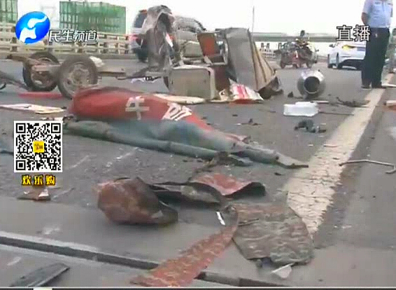 • 電動三輪車上高速被撞成碎片