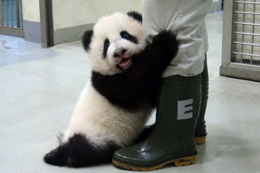 • 萌熊貓“騷擾”飼養(yǎng)員 別工作了陪我玩!