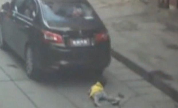 幼童過(guò)馬路竟被圈入車底