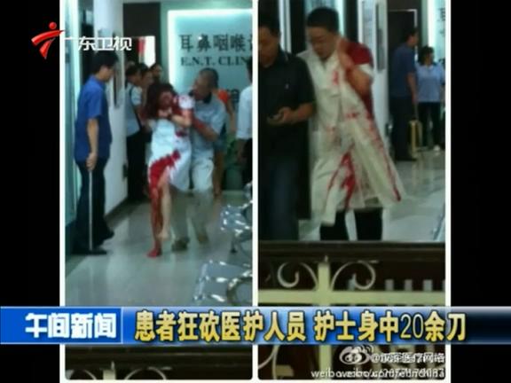 9月3日上午,一名43歲的男子在深圳鵬程醫(yī)院候診時突然拔出菜刀,將一名耳鼻喉科醫(yī)生砍傷后,再傷一名女導(dǎo)醫(yī)和一名保安,隨后挾持一名護士狂砍,護士身中20余刀。目前,4人均被送醫(yī)院治療,暫無生命危險。據(jù)了解,當事男子曾在該醫(yī)院找當事醫(yī)生看過鼻炎,因治療效果不明顯,懷恨在心,昨日攜帶4把刀到醫(yī)院報復(fù),目前其已被警方刑事拘留。