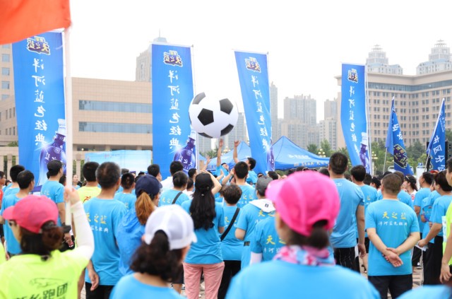舞臺(tái)區(qū)化身足球?qū)氊惱怖碴?duì)的展示臺(tái),動(dòng)感時(shí)尚的舞步與潮流健身操結(jié)合,引得群眾積極互動(dòng)。更有樂(lè)隊(duì)演出環(huán)節(jié),為奔跑的新鄉(xiāng)市民獻(xiàn)上一首勝利贊歌。