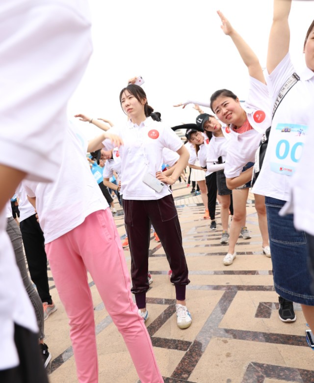 熱身操時(shí)也不忘耍寶,歡樂(lè)與跑步缺一不可