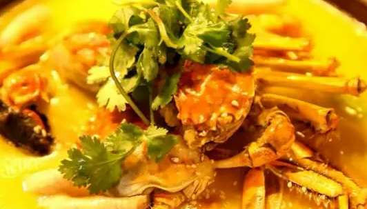 這道連機(jī)器人都要激動得把持不住的菜品呢,是這里的招牌菜湖蟹煲了。這道菜好吃的訣竅之一呢,就是食材好。正宗的陽澄湖大閘蟹,蟹膏豐滿晶瑩剔透相當(dāng)誘人。這道菜的做法其實是相當(dāng)簡單的,簡單的炸制之后呢,就是用高湯煨煮,燉出原汁原味。