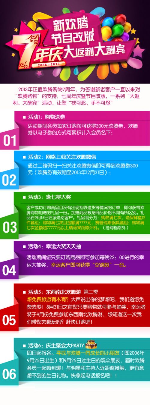 歡騰購物7周年慶 優(yōu)惠活動樂翻天