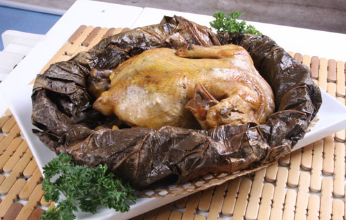 “叫化雞”原出于浙江杭州,是一些窮苦難民即“叫化子”或偷或討來(lái)的雞,經(jīng)過(guò)燒熱的土句熟而成,本是不登大雅之堂街頭菜。當(dāng)年那位清乾隆皇帝微服出訪江南,不小心弄得破衣?tīng)€衫流落街頭。其中一個(gè)叫化子頭看他可憐,便把自認(rèn)為美食的“叫化雞”送給他吃,乾隆困餓交加,當(dāng)然覺(jué)得這雞異常好吃,急問(wèn)其名,叫化頭不好意思說(shuō)這雞叫“叫化雞”,便胡吹這雞叫“富貴雞”。乾隆就說(shuō)這“富貴雞”好吃。