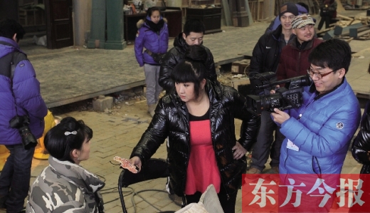 雖然“美食街”上人跡罕至,然而當(dāng)節(jié)目組來到《大河兒女》的攝影棚時(shí),卻發(fā)現(xiàn)這里人頭攢動(dòng)。劇中的明星大腕、劇組工作人員、媒體記者將這里圍得水泄不通。而香香最關(guān)心的則是:來河南拍戲的明星們?nèi)绾慰创幽厦朗衬??為聽到他們的心聲,香香客串起了娛樂記者?/p>