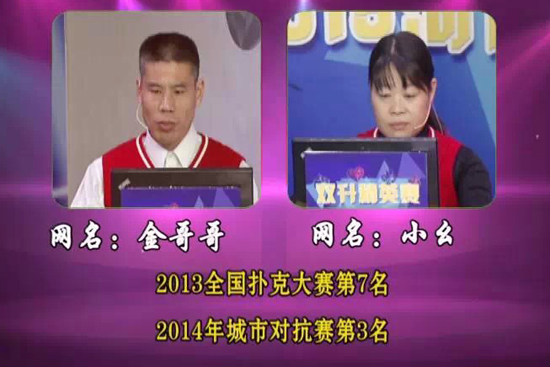 今天將要進行的是2015河南省電視雙升精英賽,這也是繼2014城市對抗賽之后進行的個人競技比賽,所有參賽選手,都是各地市參加城市對抗賽的優(yōu)秀牌手,今天進行的是上半區(qū)第1輪的第場比賽,是由新鄉(xiāng)推選的“溪水”和“雙升找我”對陣來自濟源推選的“小幺”和“金哥哥”。今天雙方選手都是信心百倍,誓要拿系第一場,究竟結果如何呢?今晚21點40分《雙升英雄會》為您揭曉答案!