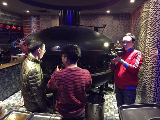 中間這個長得像UFO的大黑家伙,就是極客烤魚用的烤爐,讓做美食多年的我們也驚訝不已。