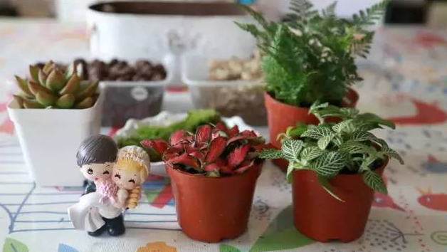 造景種植,設計與創(chuàng)意才是最重要的一步。狼尾蕨、網(wǎng)紋草、搭配多肉,鋪上一條石籽沙粒的小徑,再以白發(fā)蘚作為草坪,圈個小湖養(yǎng)上大黃鴨,一個小時你就能打造理想的小家。